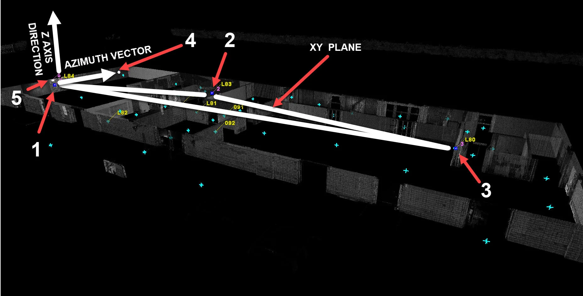 Point 4- Azimuth Point; Pick one the leveled targets or any other point to define the direction of the azimuth vector.