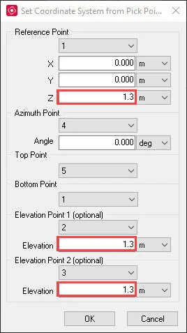 Point 2- Elevation Point 1; Pick one of the leveled targets. This point will be one of the points defining the leveled plane.