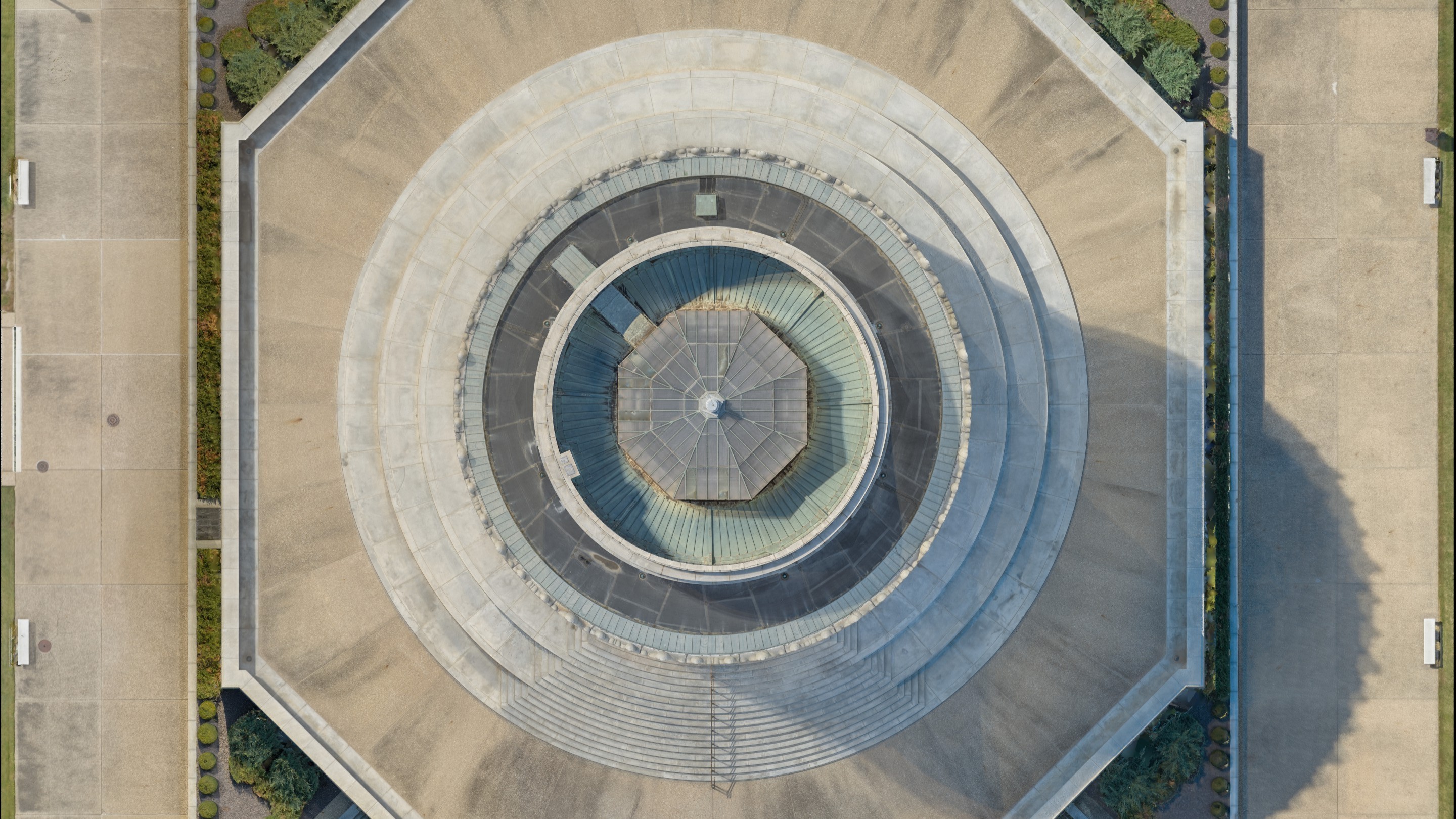 Decades of deferred maintenance had put the memorial's exterior envelope and character-defining bronze elements at risk. The preservation team needed a reliable existing conditions baseline to move forward with design, but the memorial's scale, 90 feet across at the base with architectural features elevated throughout the rotunda, made conventional documentation impractical. The envelope, the underside of the laylight, the concealed tunnel behind the entablature, and the upper laylight surface each demanded a different capture approach that, when brought together, produced a cohesive deliverable.
