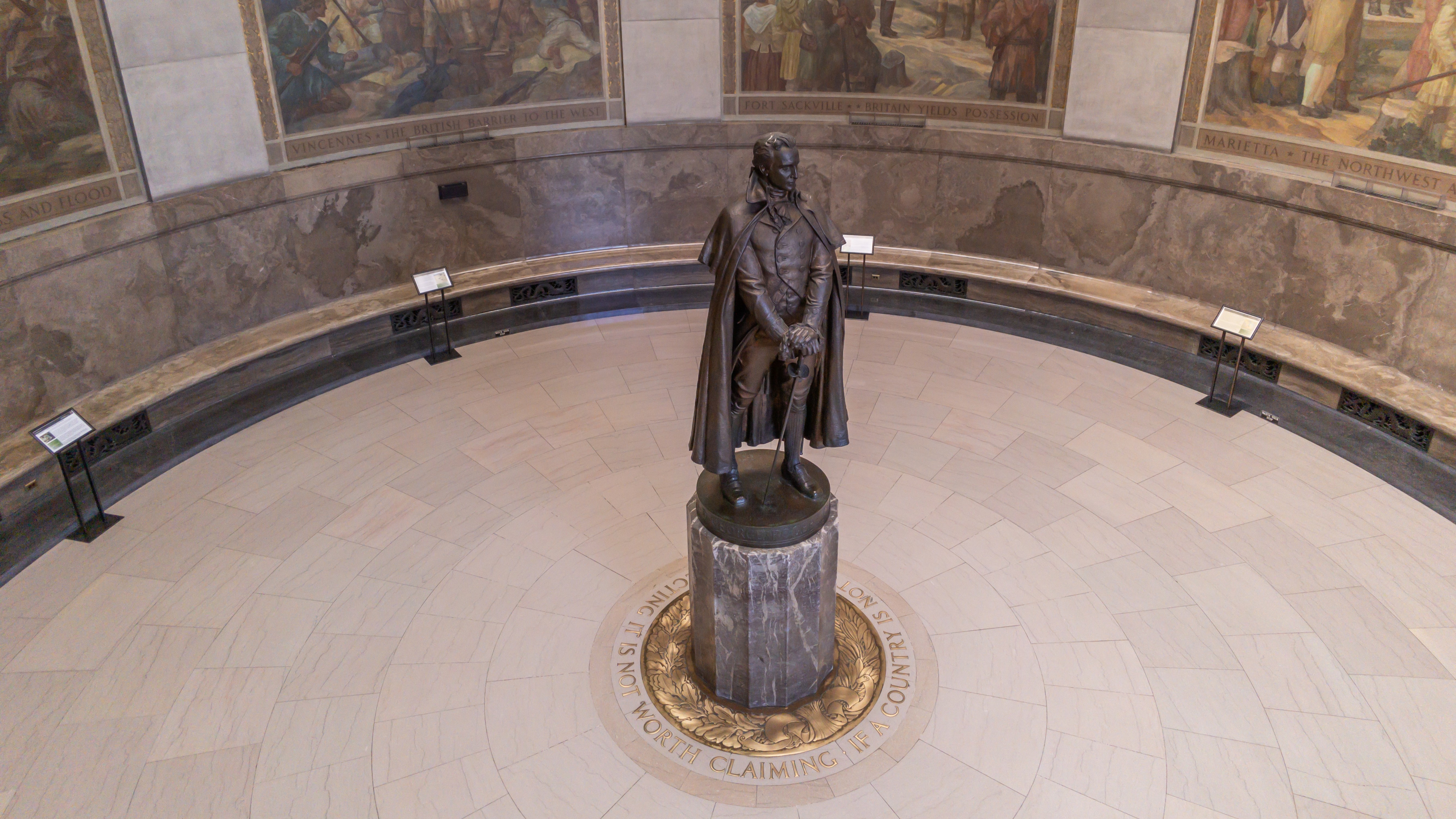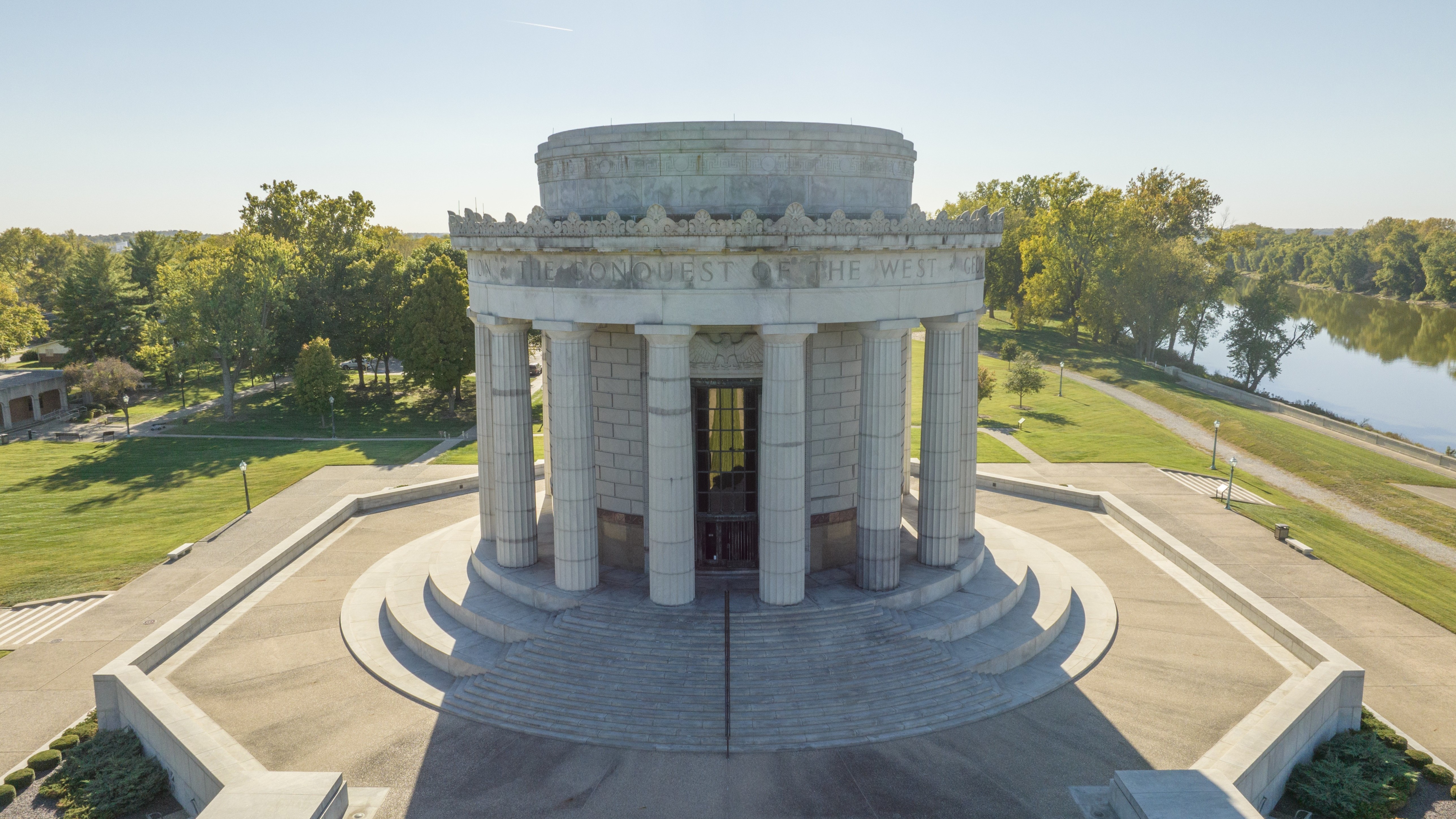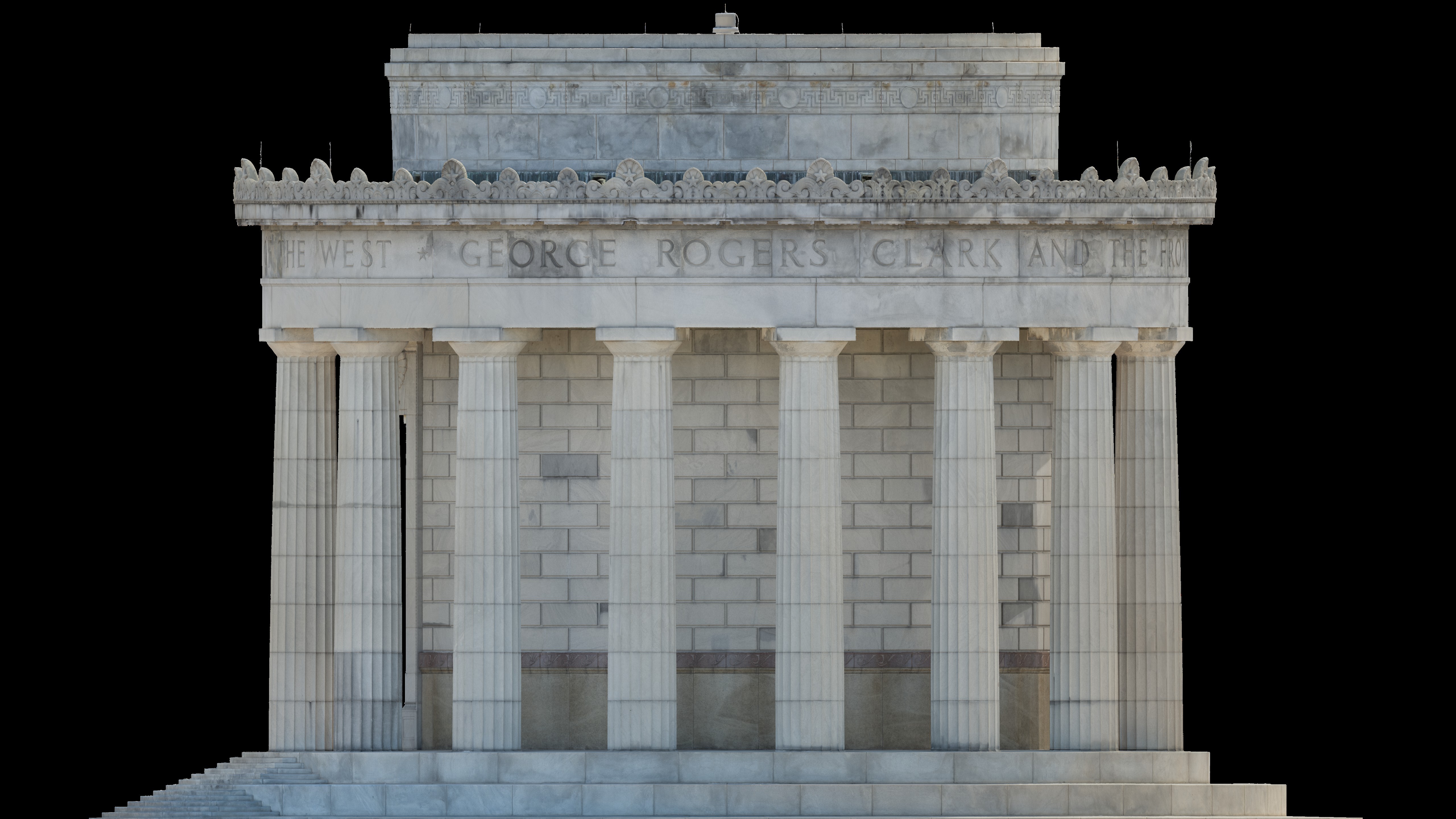 Managed by NPS, the George Rogers Clark Memorial is a nationally significant 80-foot-high granite rotunda, with character-defining bronze elements and a laylight crowning the interior. STRATA's preservation team needed accurate existing conditions documentation of the memorial's envelope and bronze features, but the rotunda's scale and concealed spaces made conventional methods impractical. RC Monkeys delivered a complete reality capture dataset, covering the exterior and the interior, including both sides of the laylight, and the concealed tunnel behind the entablature, giving the design team the accuracy and visual clarity needed for condition assessment and remediation drawings.